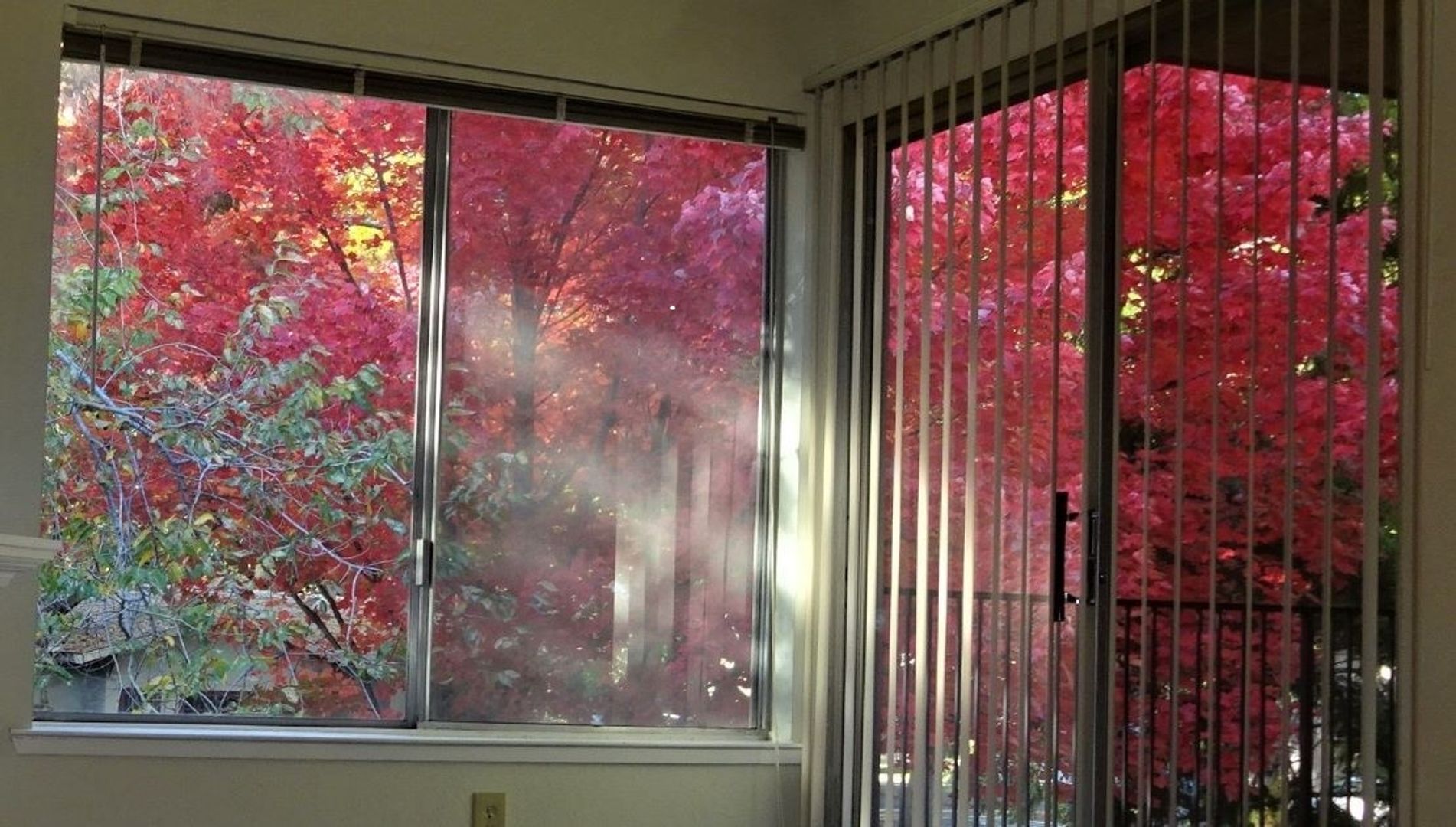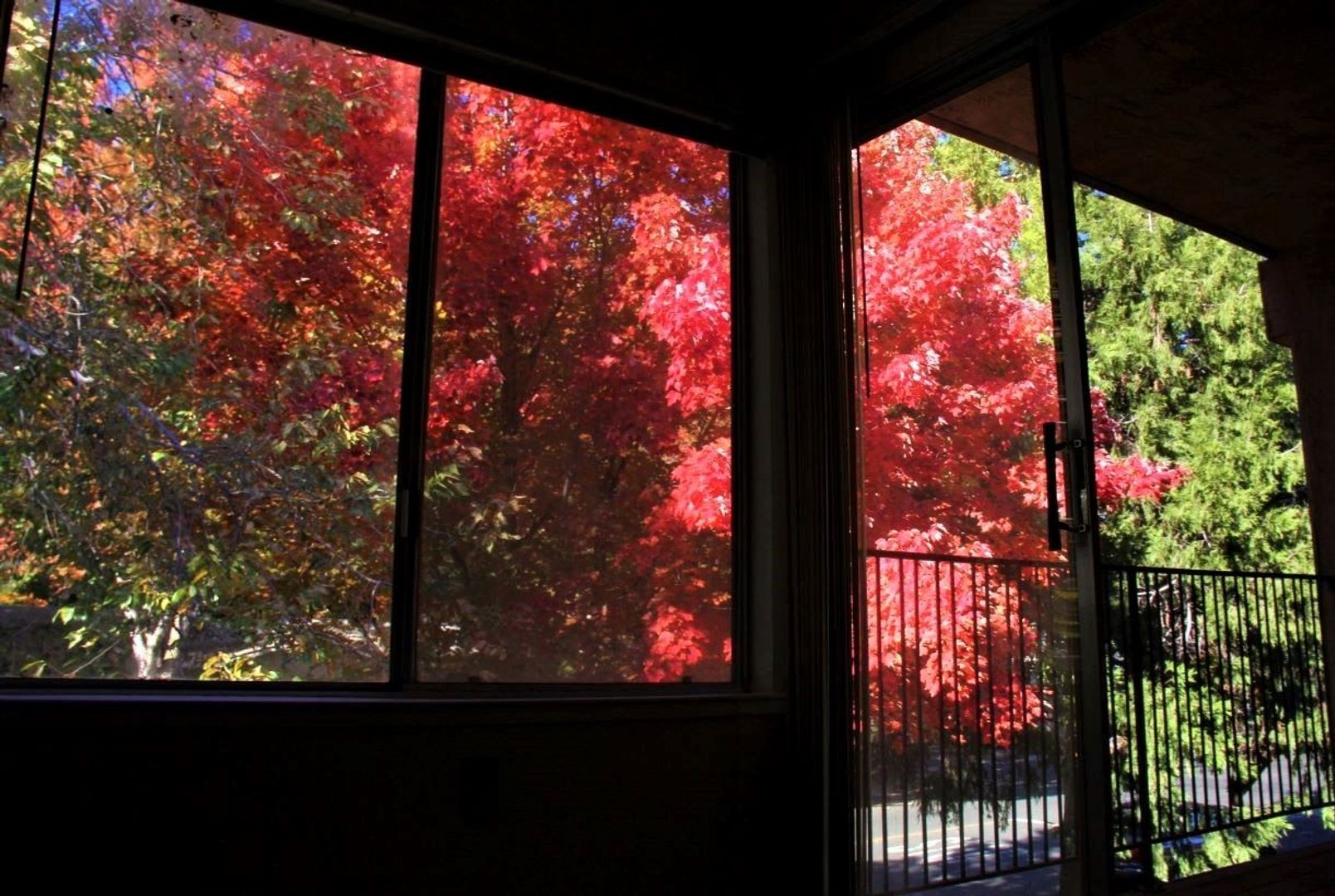 Upstairs unit with small patio and lots of light and incredible colors in the Fall ,
