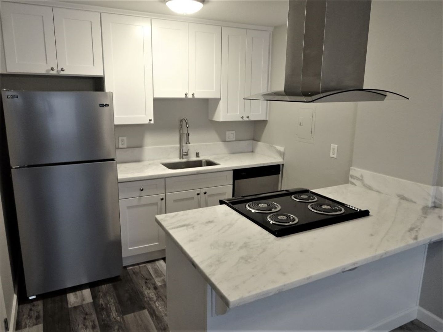 Nearly New stainless steel refrigerator, dishwasher and brand new stove ,