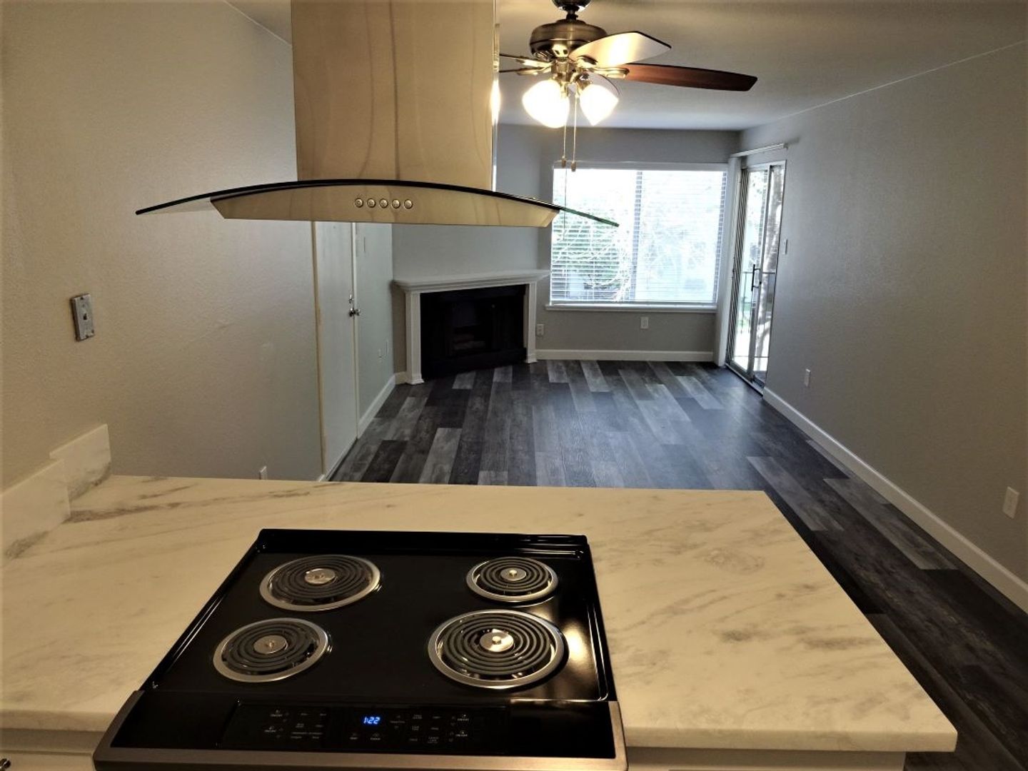 Nearly new Faux hardwood floors in the living room, kitchen and bathroom ,