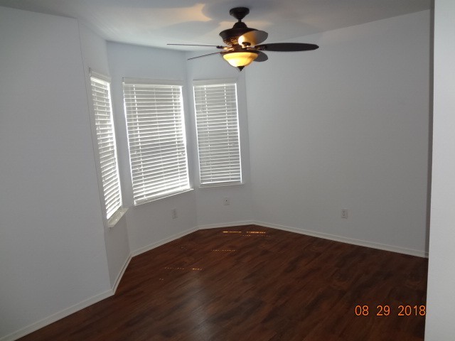 Comfortable Touches: Warm laminate floors flow throughout the home, complemented by a charming bay window with a seating area, a cozy gas fireplace, mirrored closet doors and ceiling fans for year-round comfort.