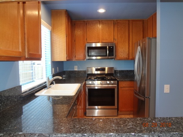 Chef’s Kitchen: The heart of the home boasts upgraded stainless steel appliances, granite countertops, a practical breakfast bar, and plenty of pantry space.