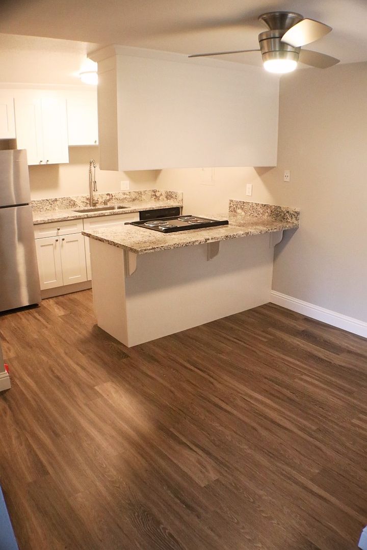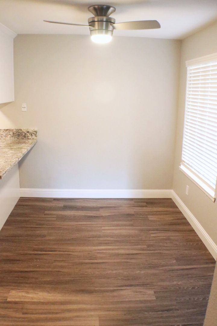 Newer Faux hardwood floors in the kitchen, dining nook and bathroom ,