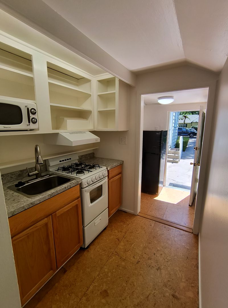 Cheery living room with wall to wall windows. Bedroom with large closet and access to the backyard. Cute kitchenette, bathroom and laundry space. Beautifully landscaped front and backyard with patio, fruit trees and and shared storage shed. Charming tree lined street, close to midtown, CSUS and hospitals. Near coffee shops, restaurants, shopping and parks. Large, shared driveway with plenty of room for parking.